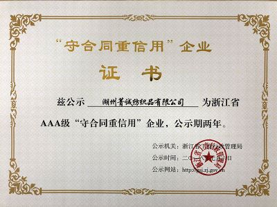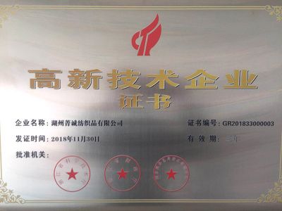 公司秉承“奮斗、合力、進步、利他”的價值觀,培養(yǎng)了一大批高素質的研發(fā)隊伍和管理團隊,連續(xù)被授予《國家高新技術企業(yè)》、《國家新型強捻化纖面料開發(fā)基地》、《省級高新技術企業(yè)研究開發(fā)中心》、《浙江省先進企業(yè)》、 《湖州市重點骨干企業(yè)》、 《湖州市專利示范企業(yè)》 等榮譽稱號。